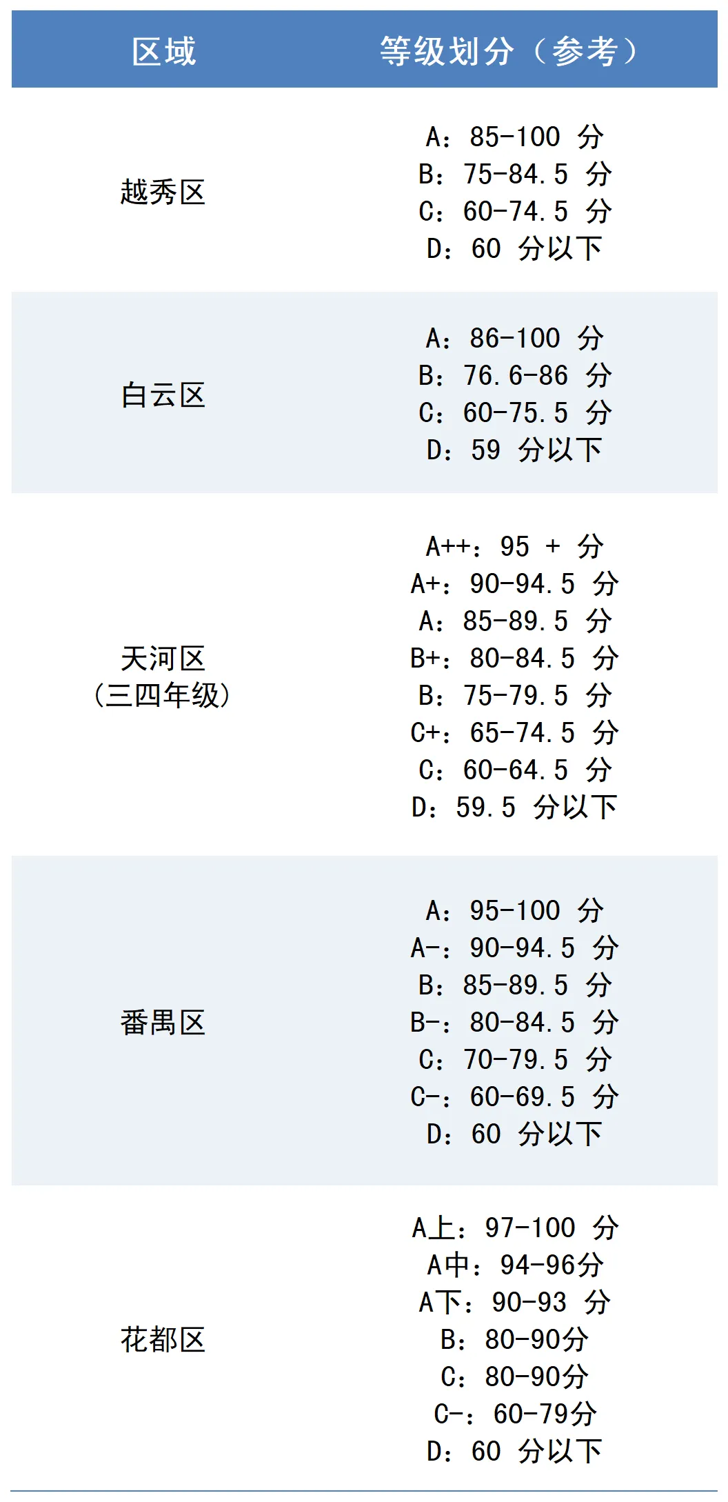 不同区、不同年级的等级对应分数有差异,以下是家长们分享的实用参考,最终以学校实际标准为准~