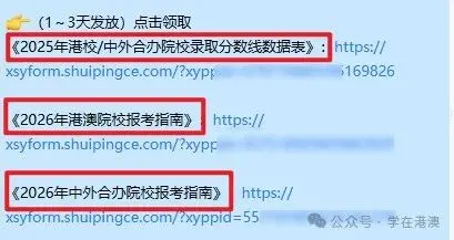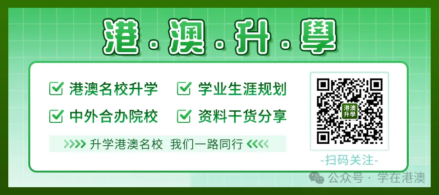 学在港澳公众号持续关注港澳院校招生动态,分享中外合作办学资讯,提供报考指导,提醒各位考生和家长关注公众号。声明:本文由学在港澳(微信公众号:xzgangao)整理编辑,内容来源于网络,如有侵权,请及时联系管理员删除。