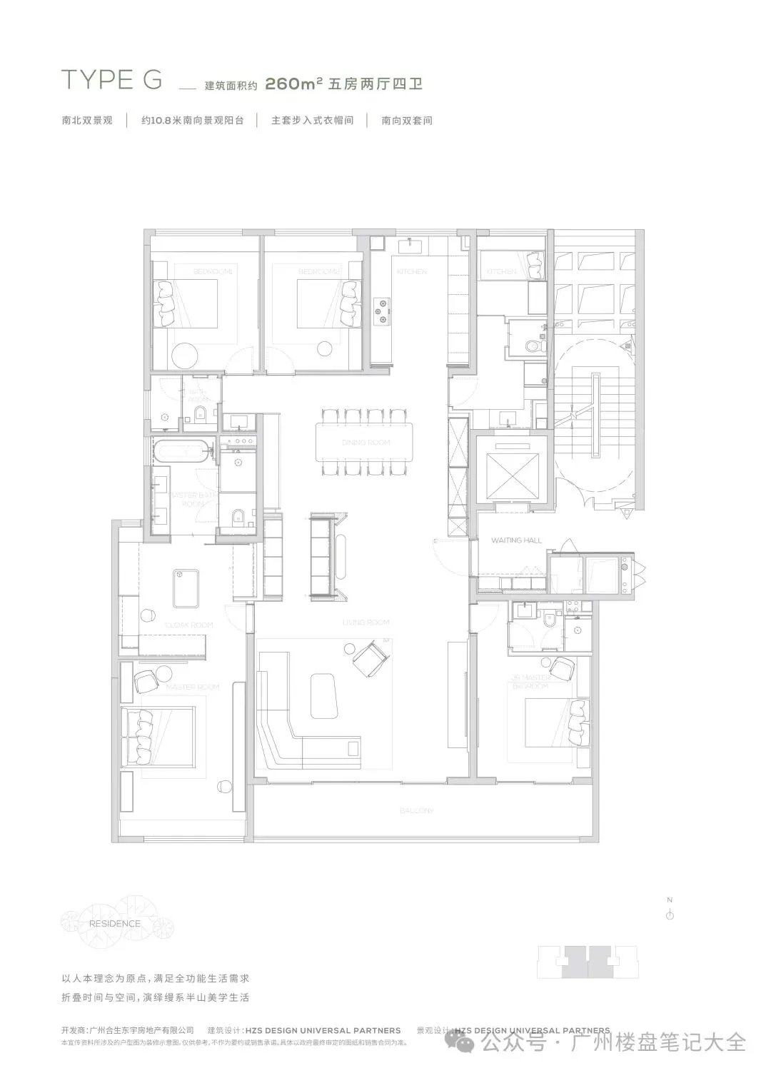 【260㎡户型】超10米南向景观阳台-南北双景观-主套步入式衣帽间-独创灵动岛设计,生活场景多重切换