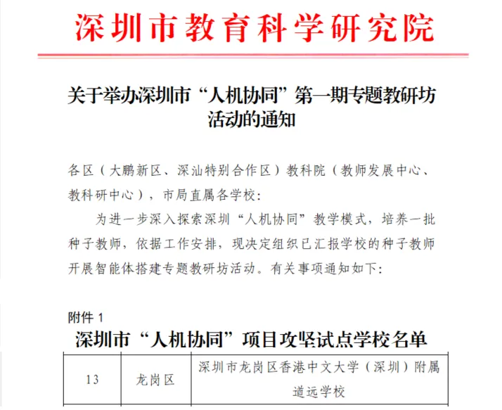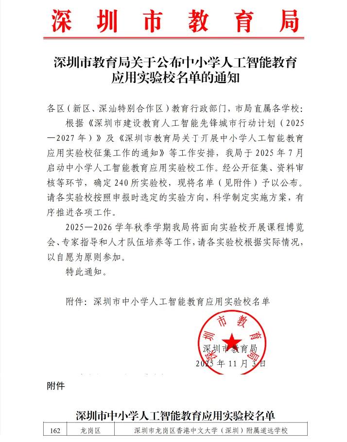 2025 年 12 月 1 日,港中深附属道远学校多元育人实践登上《中国教育报》。