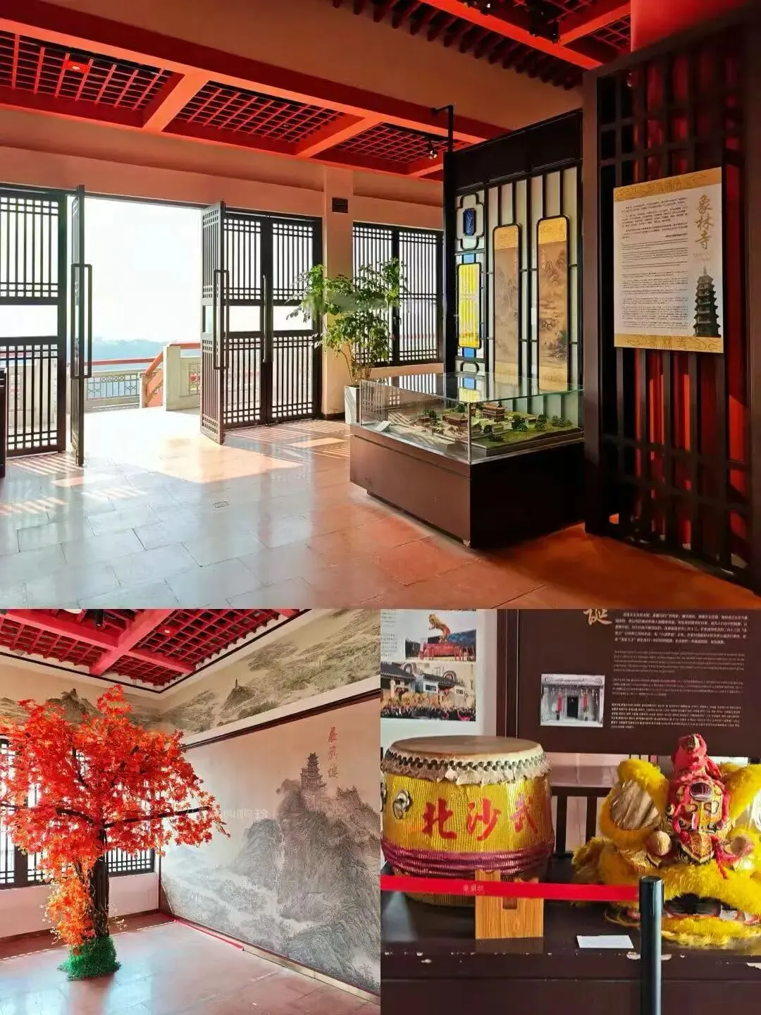 楼内藏着惊喜展览馆,里水大事纪、历史名人、羊城八景、文化遗产等内容一一呈现,边逛展边拍照,体验感直接拉满。登顶后更能解锁360°全景视野:西望南国桃园,东眺小蛮腰,南观千灯湖,北览里水镇,城市与自然的美景尽收眼底。