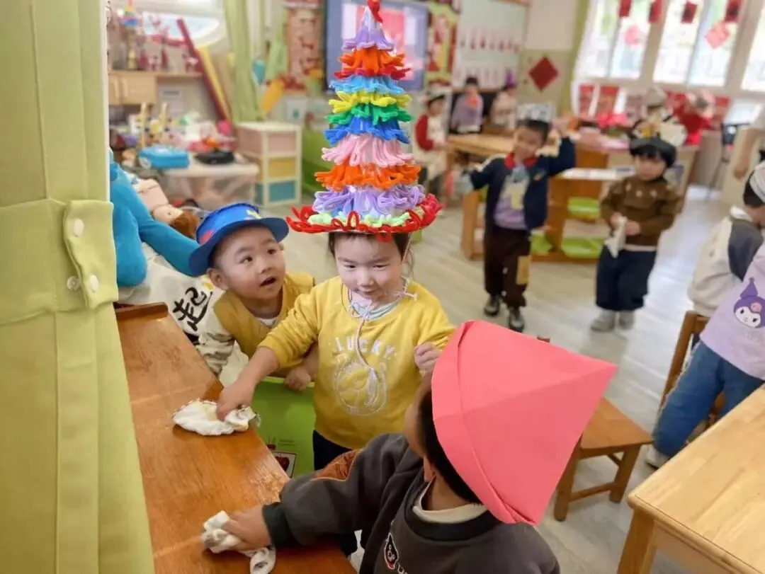 年食制作后,“除尘迎新” 劳动活动温馨开启。老师们通过趣味故事、动画短片,向孩子们传递 “除旧布新、迎接福气” 的民俗寓意。小班弟弟妹妹以整理个人物品为主,建立 “物归原位” 的意识;中班 “清洁小卫士” 们认真清洗拖鞋、擦拭座椅;大班幼儿则分组合作整理班级公共区域,在劳动中培养责任感与合作能力。