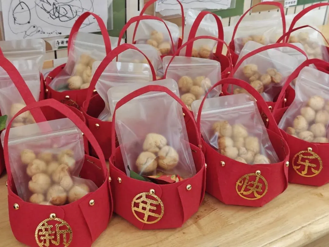 下午,师生共同 DIY 新年提篮,精心装饰的提篮装满了孩子们自己制作的年食礼物与小年桔,满满都是对新年的期待。