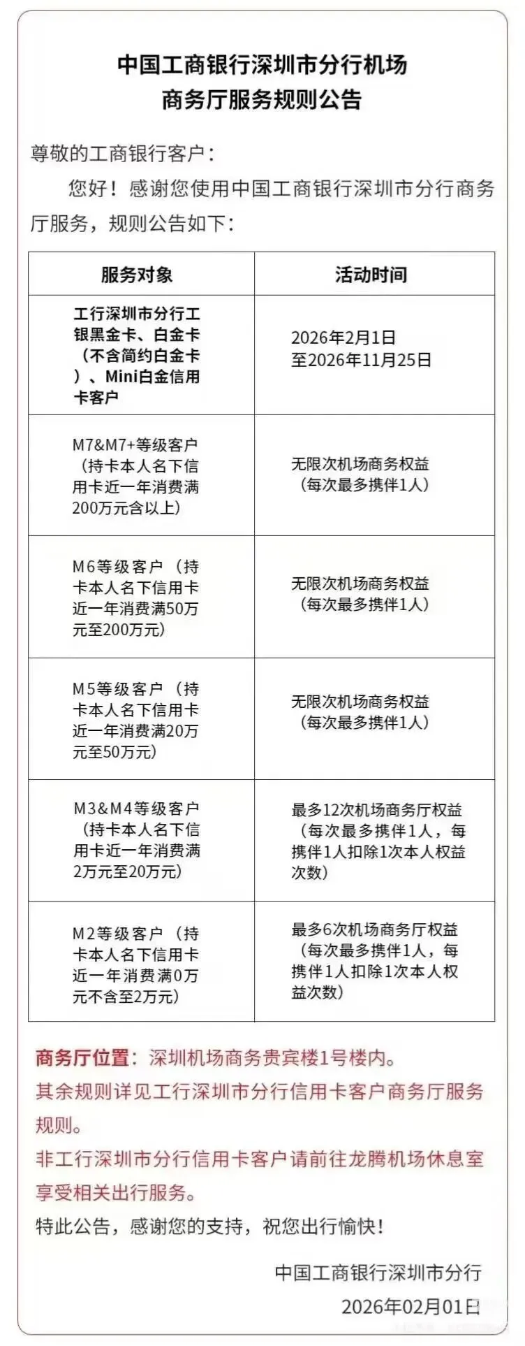 深圳本地发行的工行白金卡,根据客户M等级,可以去多次深圳机场贵宾楼,也是本次权益升级的核心内容。