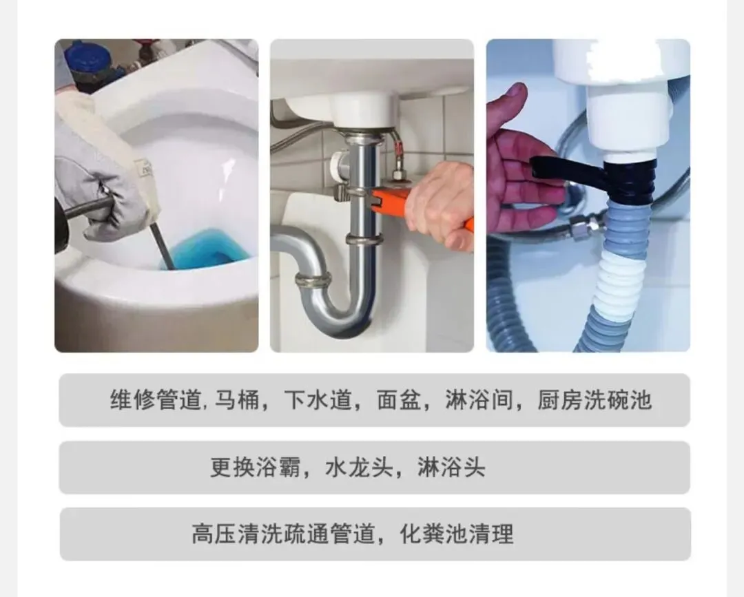 • 🔧 疏通各类下水道、马桶、蹲厕、地漏;