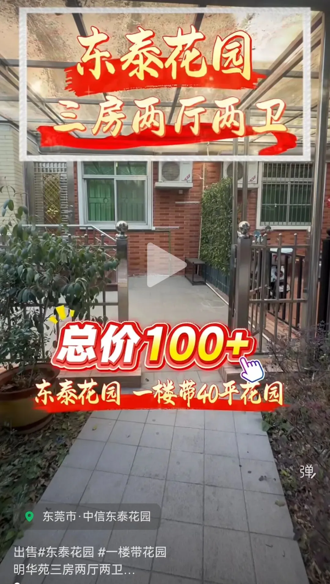 东莞东城东泰花园一楼带花园三房两厅两卫花园40平,