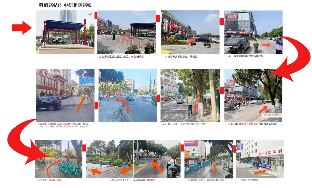 方案一:乘坐地铁5号线至[科韵路站],从C出口出站,向右掉头走沿着东方国际商业广场直走,一直走到中国民生银行路口后沿河岸继续向北直走约1000米,到大路口后左转,沿天鲜阁酒楼门口路直行至红绿灯路口,进入地下通道直行出口后右转过红绿灯后再右转直行100米即可到院。(配图☟)
