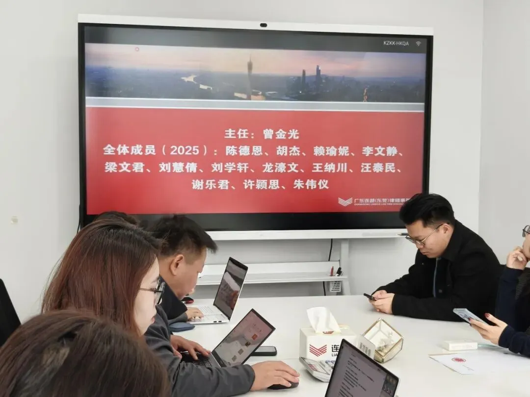 2026年1月29日下午三点,广东连越(东莞)律师事务所的青年律师联创中心,在本所会议室隆重召开了 “2025年度工作总结暨2026年度工作计划会议”。会议回顾了过去一年的奋斗足迹,见证了新一届领导班子的接棒启航,并擘画了新一年的发展蓝图。会议由青年律师代表主持,中心全体成员及律所部分管理层代表出席。