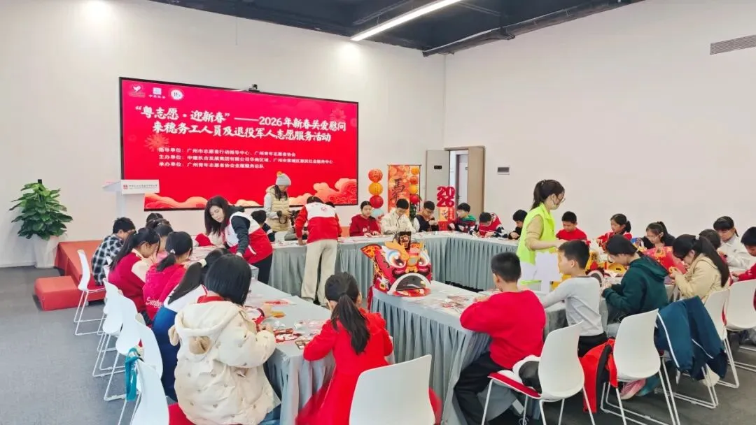 此次“粤志愿·迎新春”——2026年新春关爱慰问来穗务工人员及退役军人志愿服务活动由广州市志愿者行动指导中心、广州青年志愿者协会指导、中建玖合发展集团有限公司华南区域、黄埔区惠民社会服务中心主办,组织青年志愿者陪伴来穗务工人员子女、新就业群体等重点对象制作非遗贺年手工,品尝传统贺年食品,让他们真切感受到“此心安处是吾乡”的广州城市温情,营造喜庆祥和的节日氛围,推动中华优秀传统文化在潜移默化中传承延续。