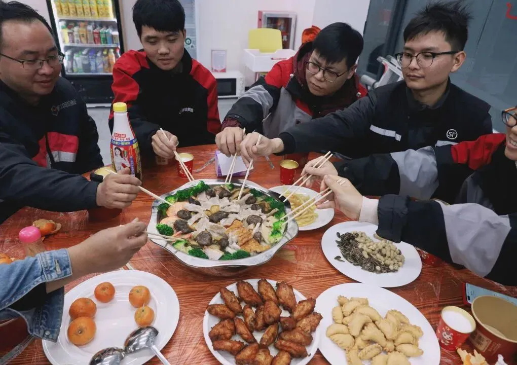 “平时跑单忙,随便对付一口是常态,今天能吃上这么丰盛的团年饭,心里真的很热乎!”外卖员小吴笑着说道。