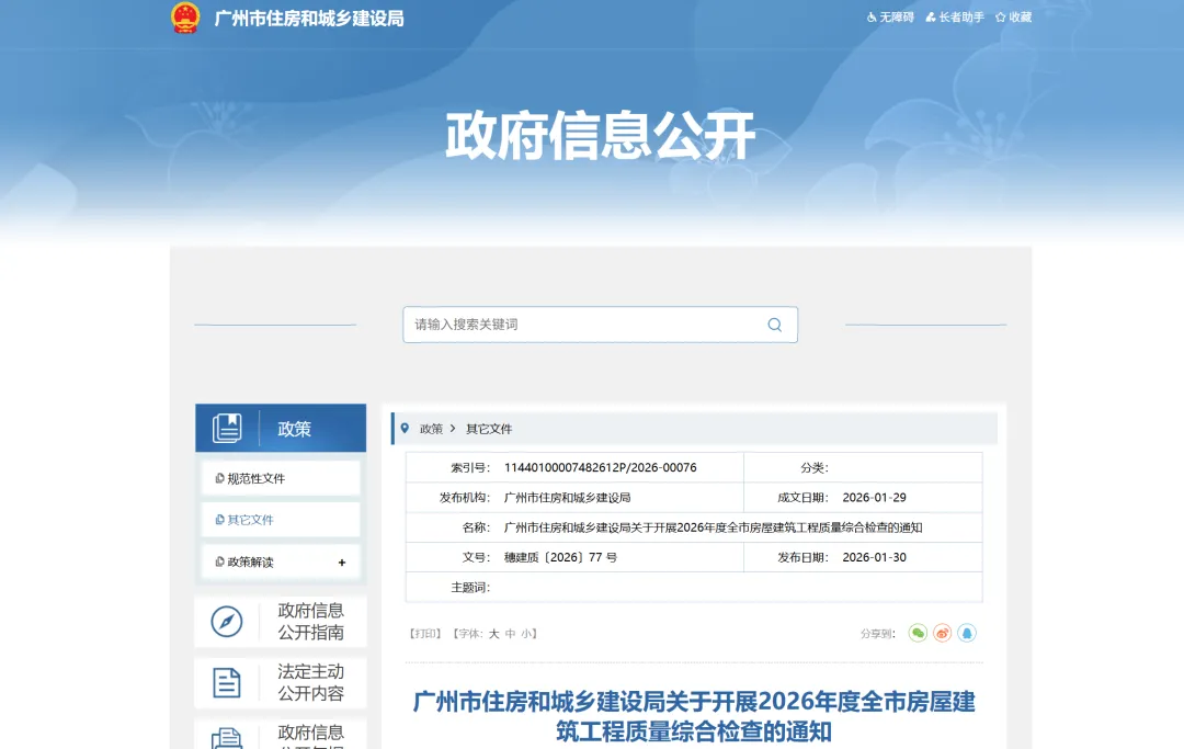 为落实省、市工程质量三年提升行动工作部署,进一步加强我市房屋建筑工程质量监督管理,切实保障工程质量和安全,根据年度工作安排,我局决定开展2026年度全市房屋建筑工程质量综合检查。现将有关事项通知如下: