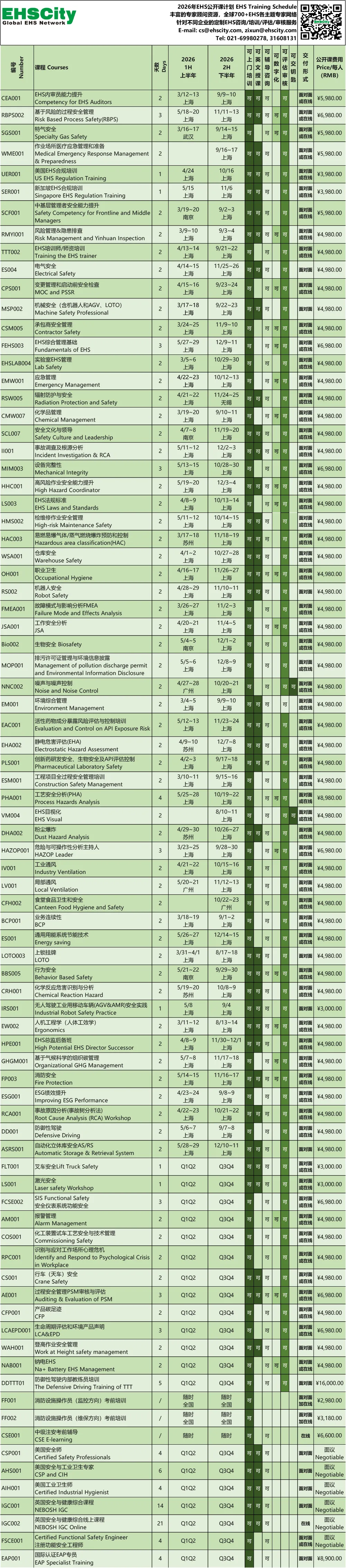 费用为4980元人民币/人(仅包含培训与午餐费用,其他交通住宿晚餐自理)报名联系cs@ehscity.com或021-69980278主办方: EHSCity Development Co., Ltd新环康安(深圳)发展有限公司