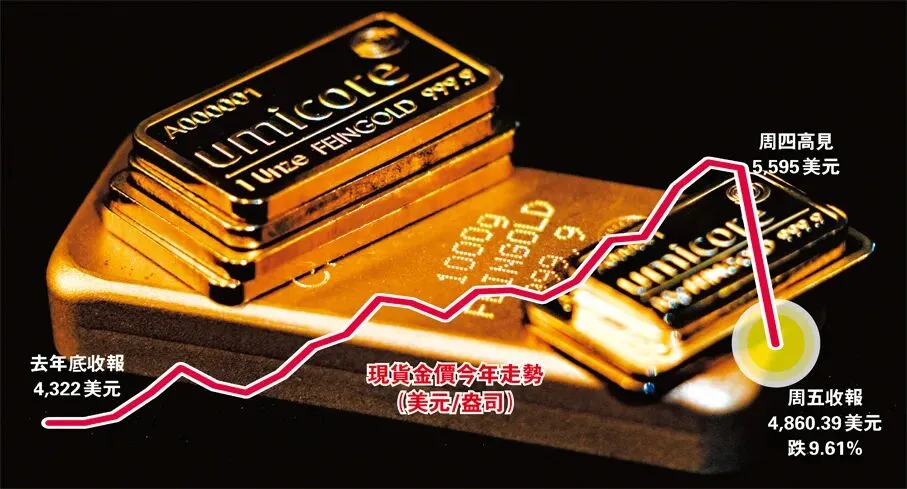 然而,随着黄金和白银市场积累了大量的获利盘,部分投机资金开始伺机而动,大肆抛售并做空市场。这一举动引发了市场的剧烈暴跌,更创下了40年来单日最大跌幅的纪录。29日金银均出现一轮暴跌暴涨之后,周五更出现40年以来最大单日跌幅。截至收盘,现货黄金报4,860.39美元,跌幅9.61%,现货白银报84.43美元,暴跌26.83%。