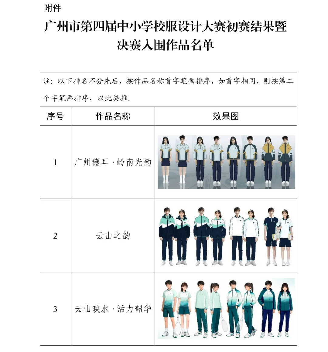 广州市第四届中小学校服设计大赛初赛结果暨决赛入围作品名单已经公布!