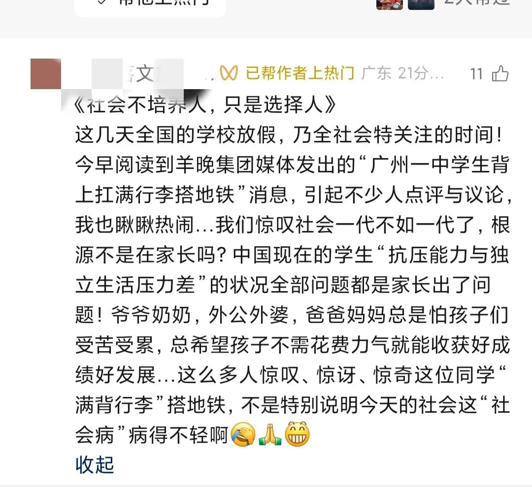 广州地铁3号线的早高峰里,一个穿着蓝白校服的少年突然成了焦点。