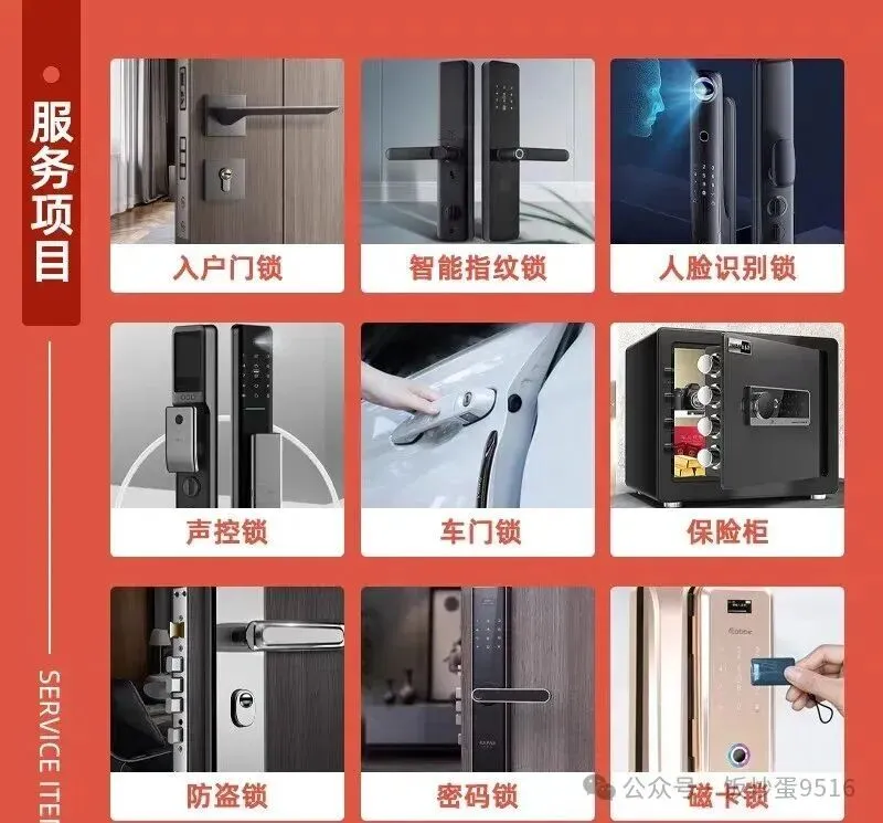 - 安防升级:安装、维修商用高安全级别锁具及门禁系统。