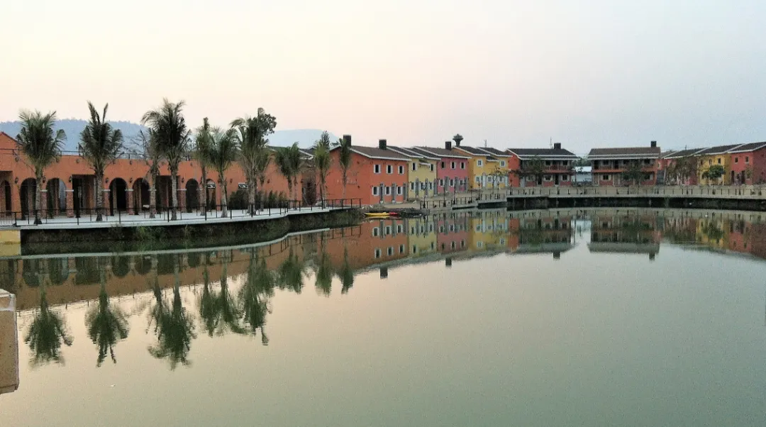 万江临江的绿道好走,傍晚灯一亮,很有味道。