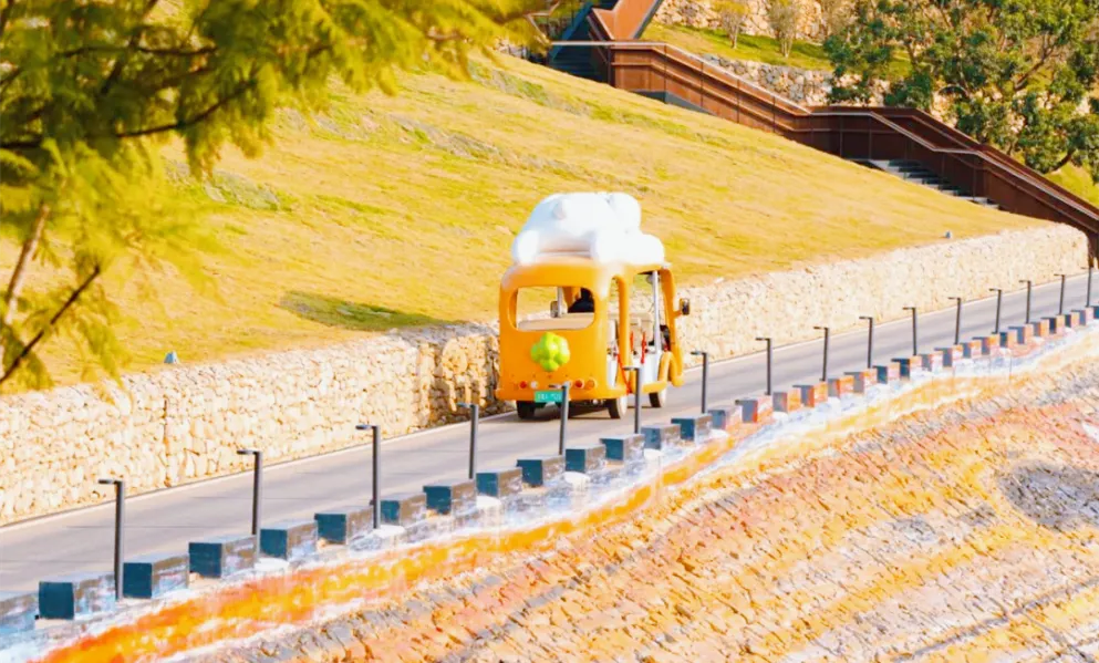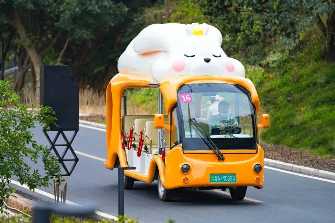 景区的环线车-带数字编号,请在各站点等候乘坐,一般是15-20分钟/趟)