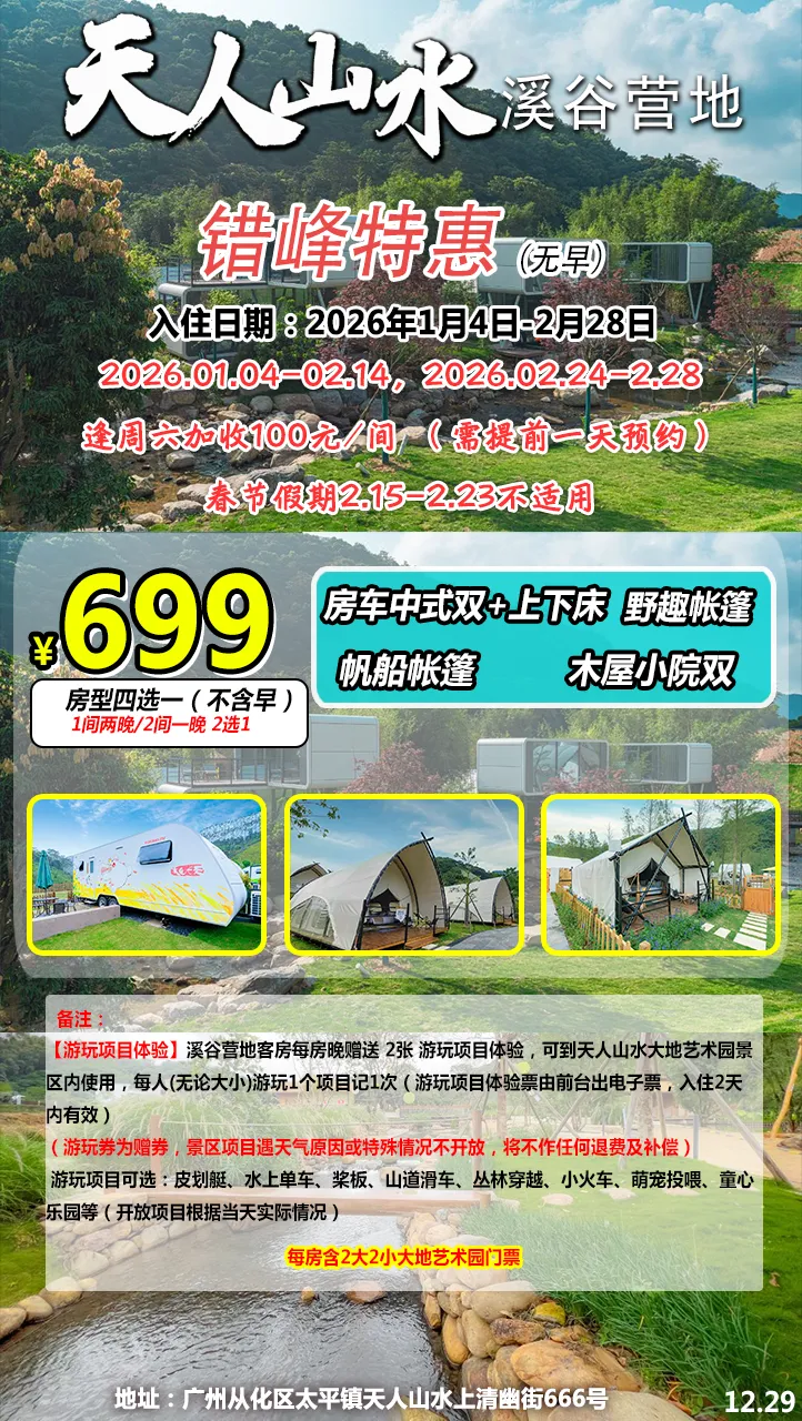 注意⚠:二期营地的全部房型均不可加床。