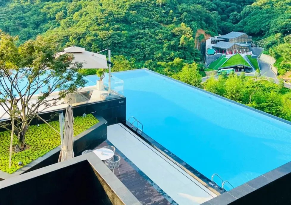 设在半山间的无边泳池,早上8-10点是晨泳的最佳时间,