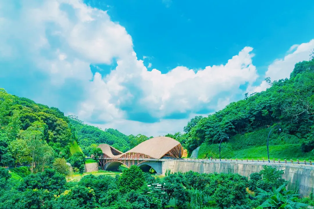 登科桥:这座桥取大地之“竹”为原材料,编织成飞跃龙门的鲤鱼的造型。