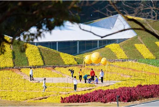 在园区里,目之所及皆是风景画卷,有悠闲踱步的白鹭、翩翩飞舞的蝴蝶、五彩花卉、溪谷、湖泊、森林…