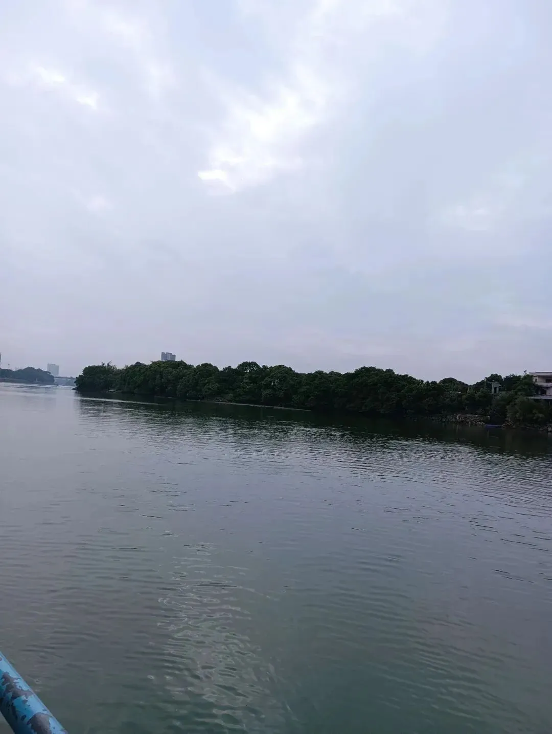 东江之畔,绿树如茵,连成片的榕树舒展着枝叶,在江面投下翡翠般的倒影。随着渡船划过绸缎似的江水。我们很快就到了大王洲岛的码头。