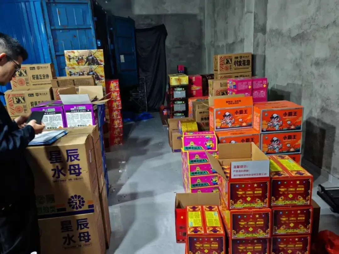 接到线索后,相关部门赴现场核查。执法人员在楼内查获烟花爆竹434箱(约2030公斤)。目前,该批烟花爆竹已安全转移到临时储存仓库内,公安机关已立案调查,案件正进一步办理中。