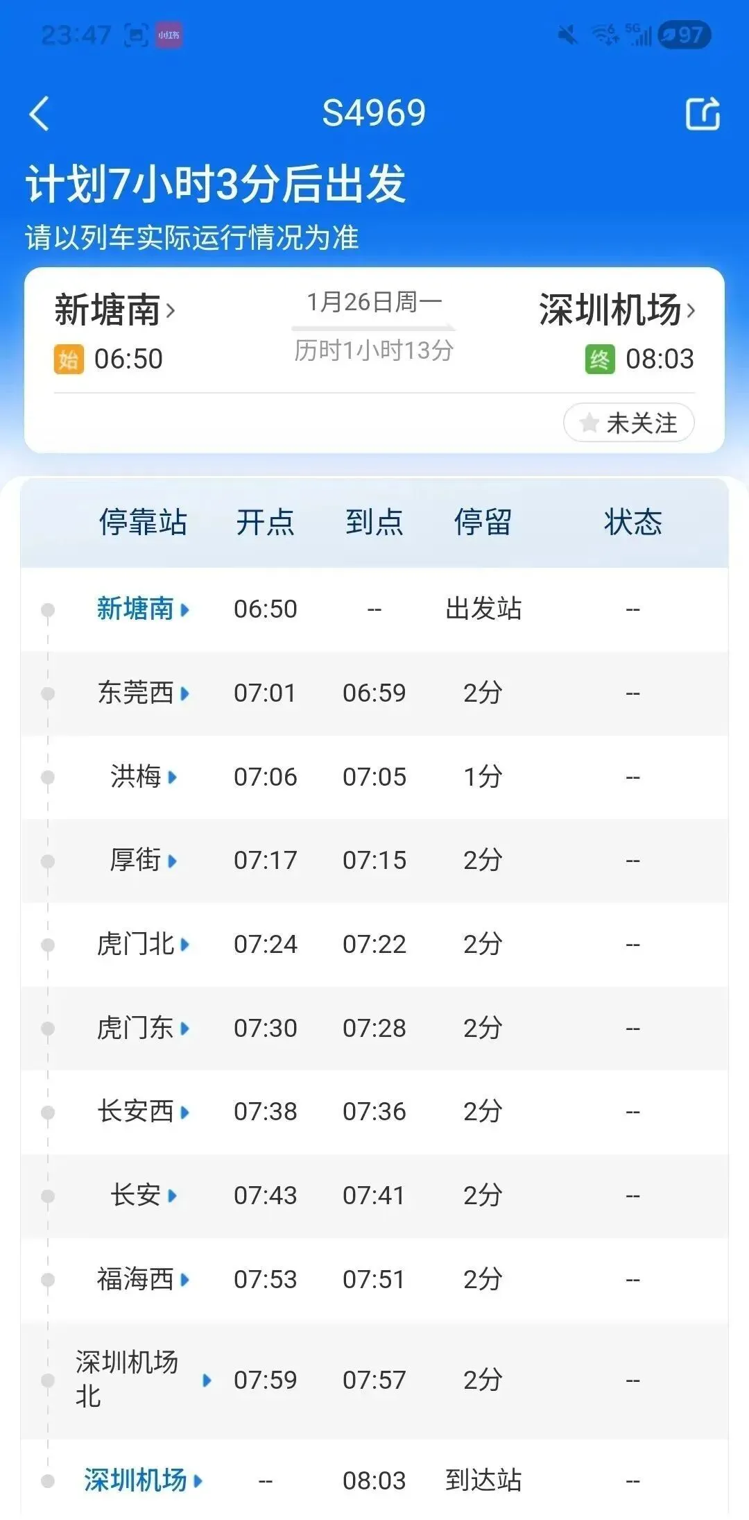 唯独穗深城际,跟俩大哥差一字,待遇却天差地别。每天仅20对车,存在感低到仿佛不存在。说它离谱都算客气,槽点能攒一箩筐:广州起点新塘南站,离老城区40公里像跨城;深圳只到机场,进核心区还得再坐一小时地铁,完美诠释“两头不靠岸”。