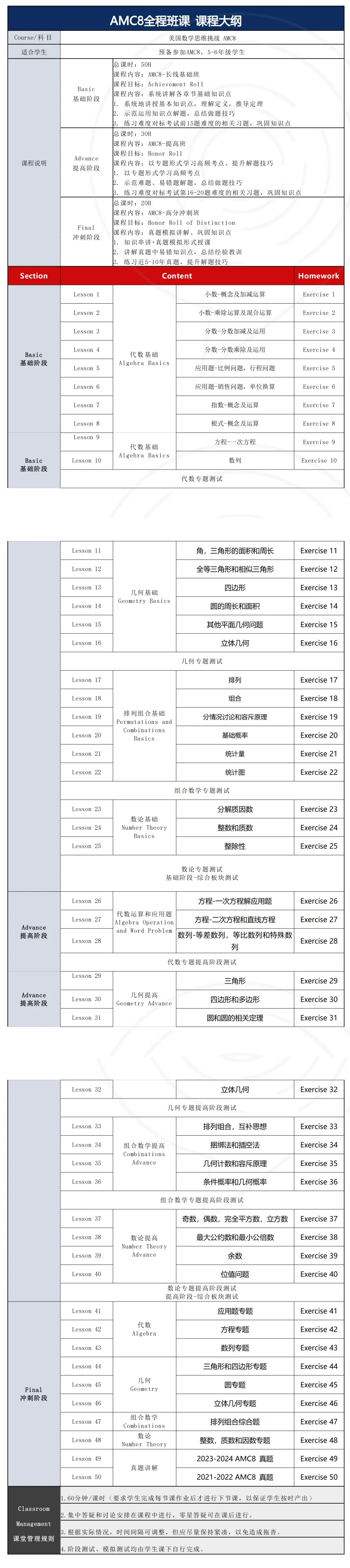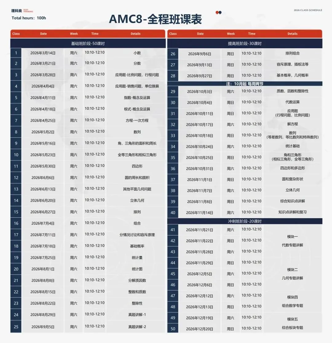 ✅ AMC8全程班班(100h):包含以上三阶段