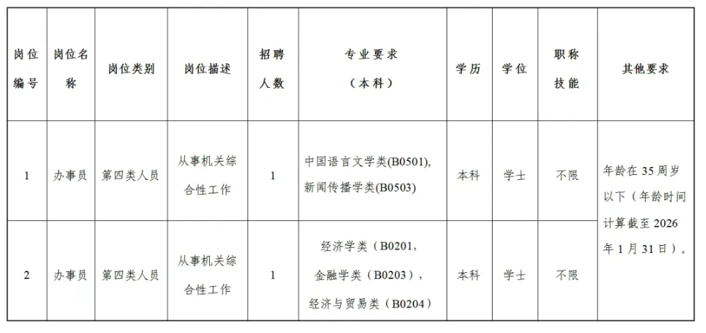 本次招聘第四类机关事业单位派遣人员2名,具体岗位情况和要求见岗位表。