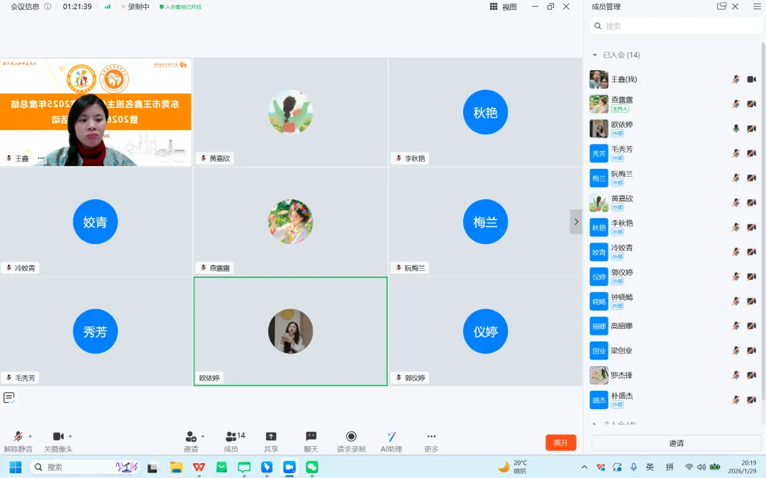 会议伊始,主持人查露露老师宣布活动正式开始,向线上的全体工作室成员致以热烈欢迎。她在开场中强调本次活动主旨:即通过系统复盘过往工作、深度分享成长感悟,明确2026年的核心发展方向,让每一位成员的付出都能落地生根,每一份努力都能收获成长,为工作室的持续发展注入新的动能。