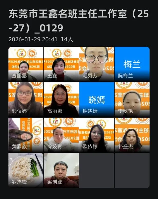 此次线上活动,既是对工作室2025年工作的全面复盘,也是对2026年发展的精准规划。站在新的起点上,东莞市王鑫名班主任工作室全体成员将以更清晰的目标、更务实的作风、更昂扬的姿态,深耕教育沃土,聚焦专业成长,在班主任工作的道路上携手同行,共赴教育新征程!