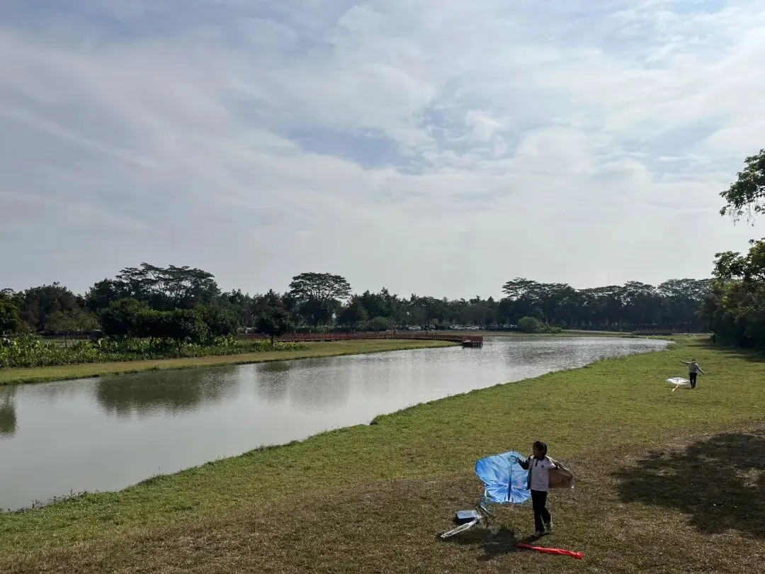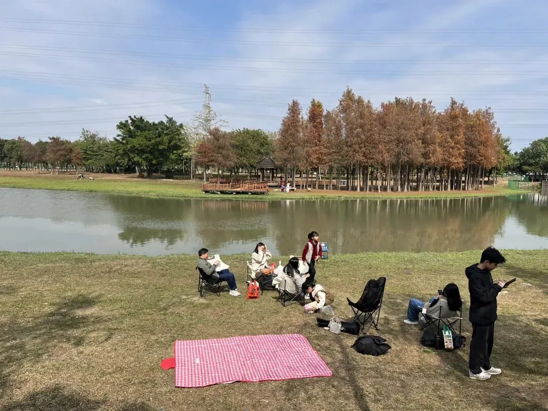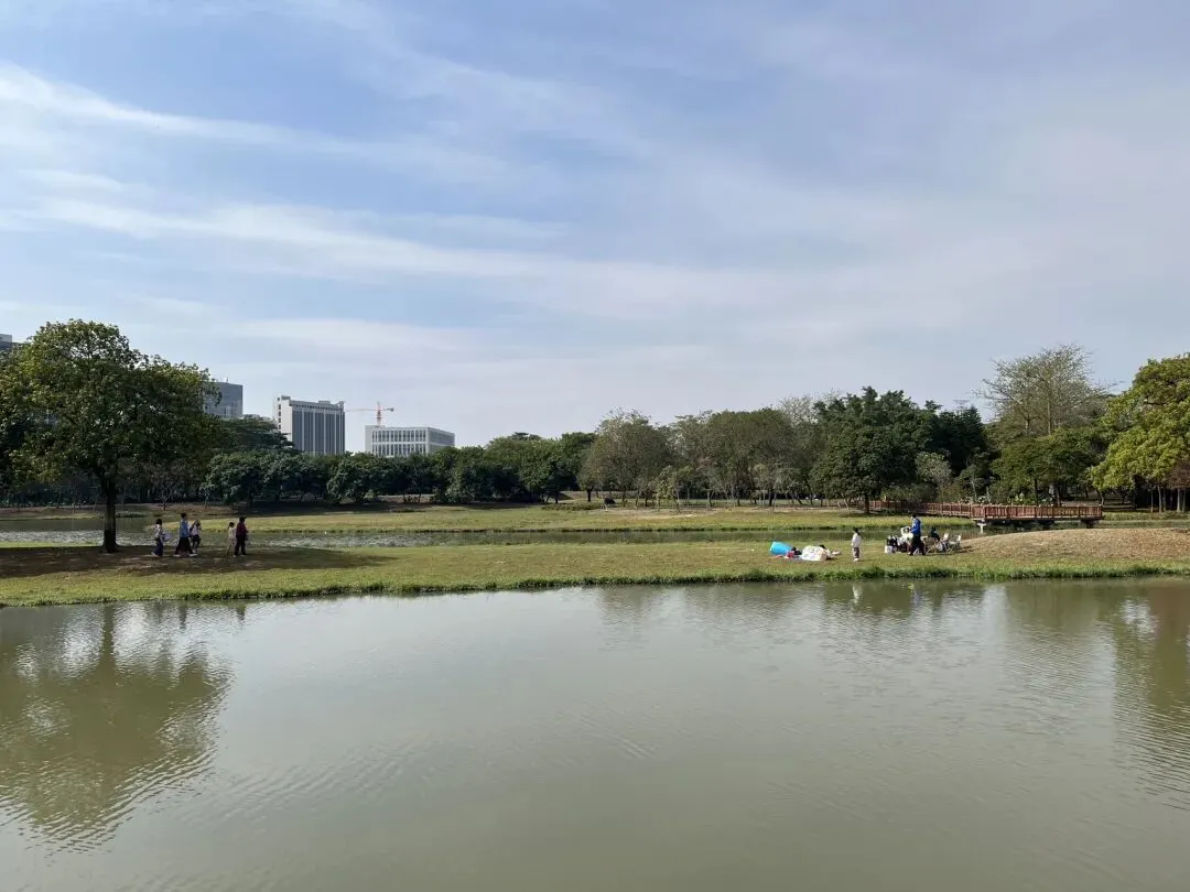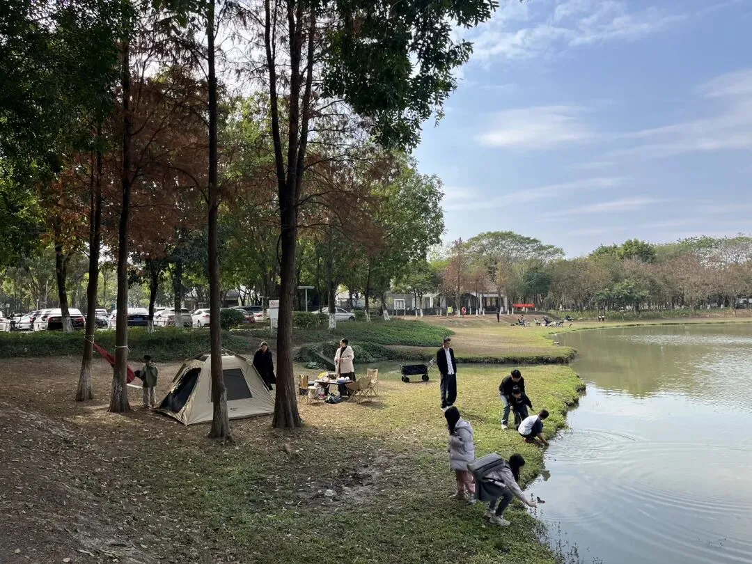 孩子们拿着捞网在湖边浅滩捞小鱼、追蝴蝶,大人们围坐在一起喝茶聊天,晒着暖融融的太阳,享受难得的周末惬意时光。