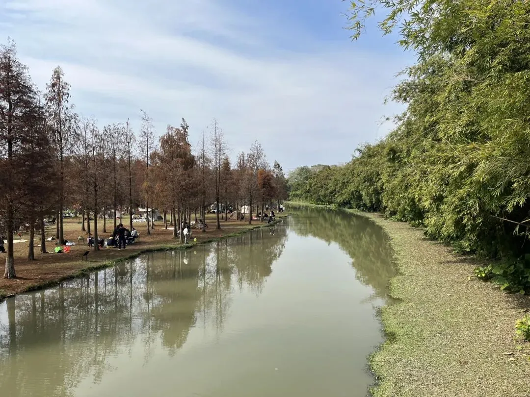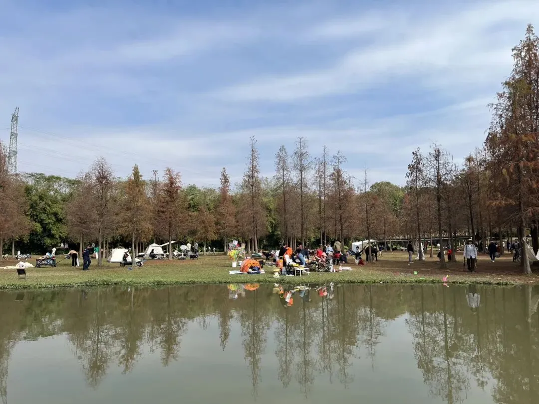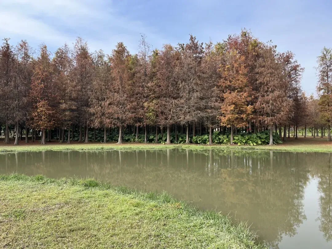 这是一片藏在东莞的原生态湿地秘境——红透的落羽杉沿着水岸连成一片焦糖色的森林,开阔大草坪能搭帐篷野餐,关键还全程免费,不管是带娃撒欢还是独自散心,都惬意到不想走,妥妥的广州周边遛娃宝藏地!