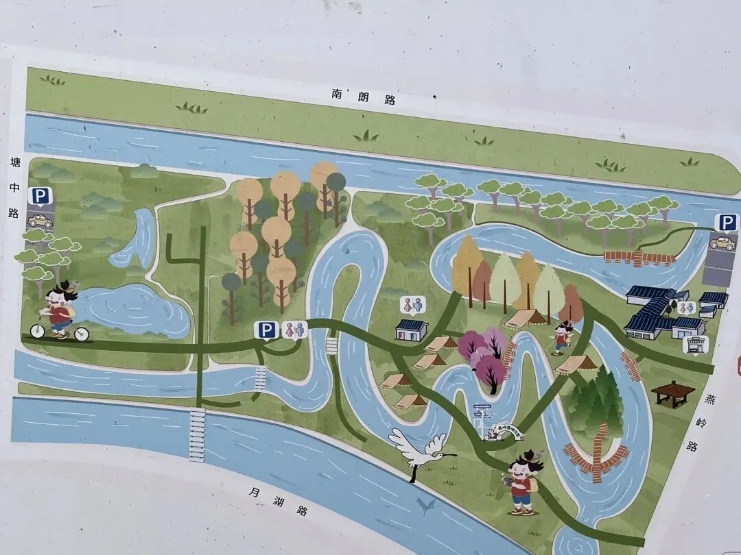 浅滩的河水吸引着小朋友拿树枝戏玩,这样亲近自然的快乐,远比在家看屏幕更有意义。而且园区里厕所分布均匀,干净整洁,带娃出行的刚需完全能满足,细节处让人觉得很贴心。