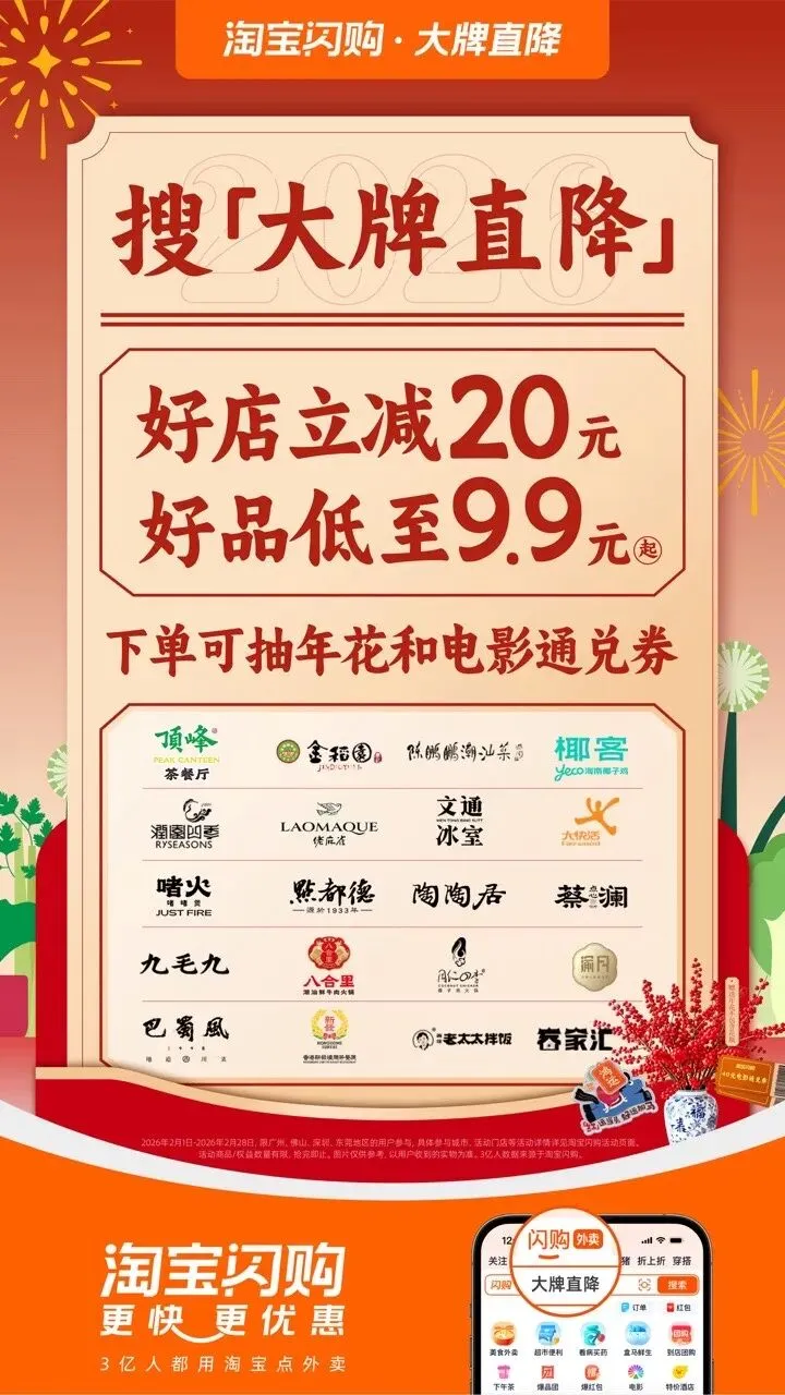 年底聚会多、工作忙,不想煮饭?外卖也要吃出「年味仪式感」!淘宝闪购联合多家广州本地口碑品牌,推出大牌直降专场,让你食得豪、省得多!