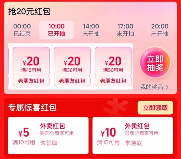 打开淘宝闪购搜「大牌直降」,领取一大波红包!好店立减20元的红包、5元10元外卖红包!