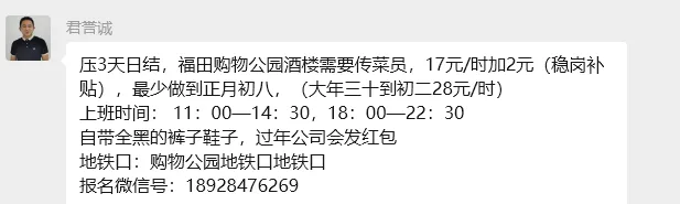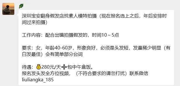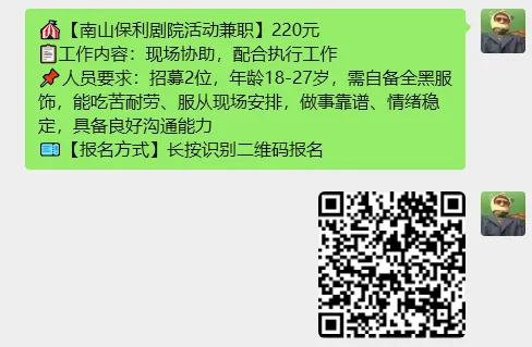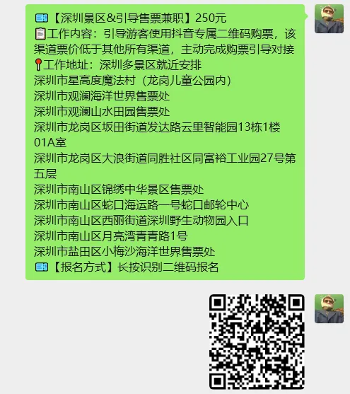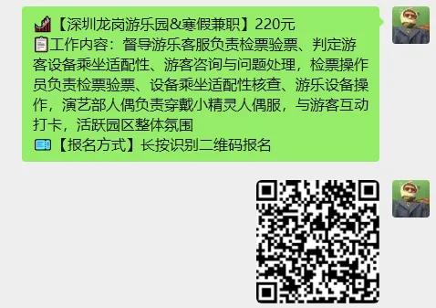 【深圳兼职】华发冰雪世界、罗湖花市¥190元、南山保利剧院¥220元、年会¥295元、假发店¥250元、景区引导¥250元、游乐园¥220元......