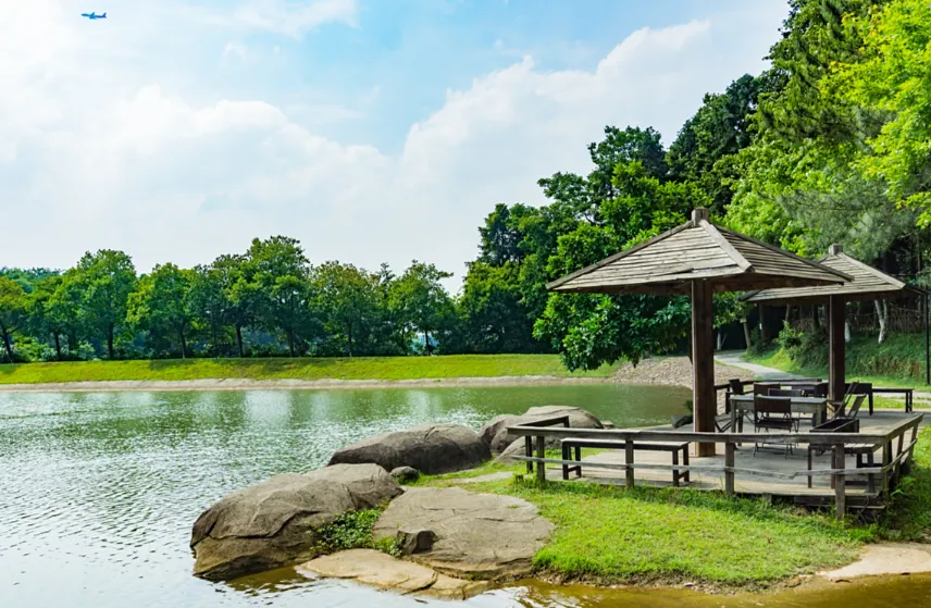 同沙生态公园适合骑车,湖边风平,鸟在水里扑腾,手一抬就能拍到影子。