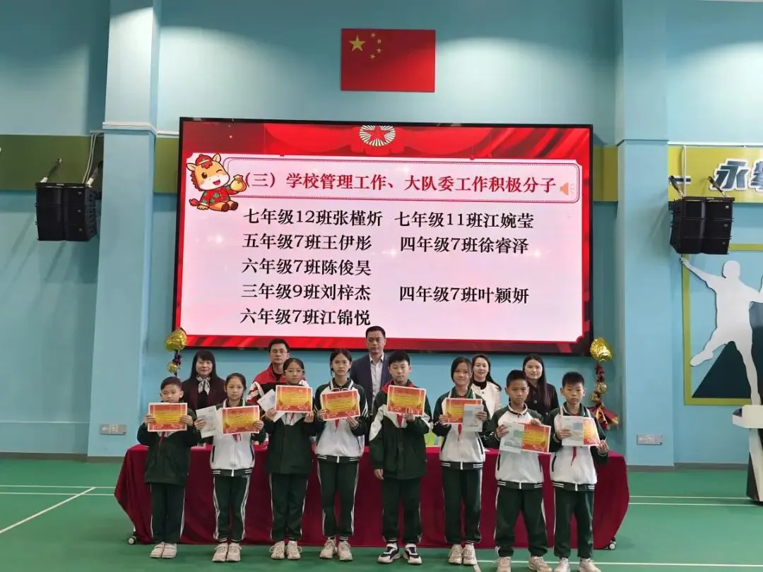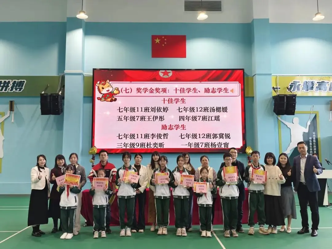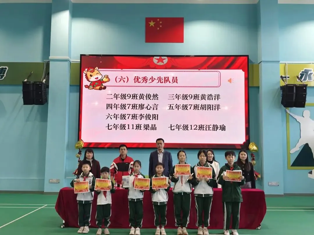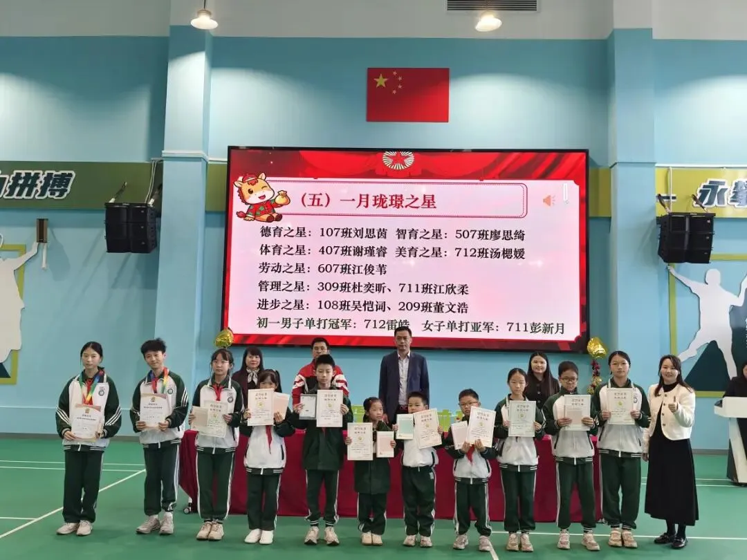 散学典礼伊始,五星红旗升起,国歌铿锵,响彻校园。全体师生庄严肃立,行注目礼,目光所及皆是赤诚,心中所怀皆是热爱。这一抹中国红,是一学期来学子们笃学不倦的精神底色,是老师们躬耕教坛的初心坚守,更是全体师生携手同行、向阳生长的信念象征,为本次典礼拉开了庄重而温暖的序幕。安全护航,方得远行。罗校带来安全教育宣讲,谆谆叮咛化作冬日里最坚实的守护。从交通安全的谨行慎思,到消防安全的防患未然,从居家安全的细枝末节,到网络安全的明辨是非,一个个实用的安全知识,一声声恳切的暖心提醒,如春雨润物般浸润心间。愿这份守护化作前行的铠甲,让每一位学子在冬日假期里平安喜乐,步履安然。回望来路,皆是芳华。徐橙副校长作了温馨致辞,娓娓道来一学期的点滴过往。校园的每一个角落都镌刻着奋进的足迹,课堂上,目光灼灼探索知识星河;操场上,步履铿锵绽放少年意气;活动中,同心协力书写集体荣光;同学们以努力为羽翼,用坚持作阶梯,在成长路上稳步前行,点点滴滴的进步,都凝聚着汗水与热爱。老师们以匠心育桃李,用陪伴暖童心,在三尺讲台默默耕耘,这一程的耕耘,既有繁花满径,亦有温暖相伴,为新学期的前行积蓄了满满的力量。星光不负赶路人,时光偏爱奋进者。最激动人心的表彰仪式如约而至,校园里的榜样之星们登上荣耀舞台。一张张奖状熠熠生辉,一个个笑容明媚灿烂,这是对勤奋者的嘉奖,对优秀者的肯定,更是对每一位追光者的激励。受表彰的同学们昂首挺胸,走上领奖台,接过属于自己的荣誉。台下掌声雷动,是祝贺,是赞许,更是对榜样的致敬。这一份份荣誉,是努力的见证,是成长的勋章,也激励着每一位同学以榜样为帆,乘风破浪,逐光而上。冬藏万物,蓄力生长,学期的落幕不是终点,而是奔赴新程的起点。愿同学们带着这一学期的收获与荣光,带着师长的叮咛与期许,在寒假里沉淀自我,丰盈内心,邂逅更多美好。愿全体教师怀揣热爱与期许,在时光里蓄力充电,温暖前行。待春暖花开时,我们再聚校园,以更昂扬的姿态,赴新程,启新章,续写属于我们的成长华章!