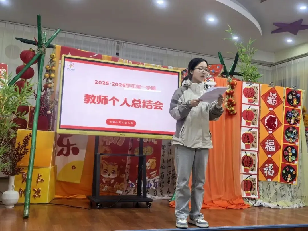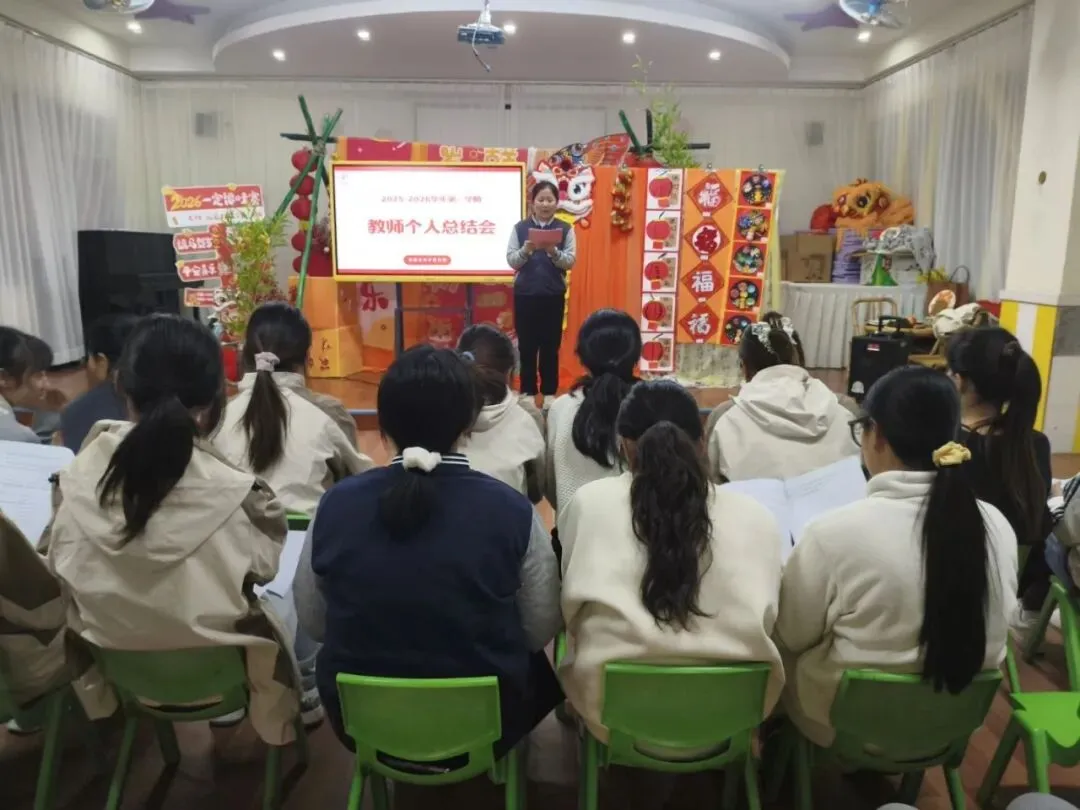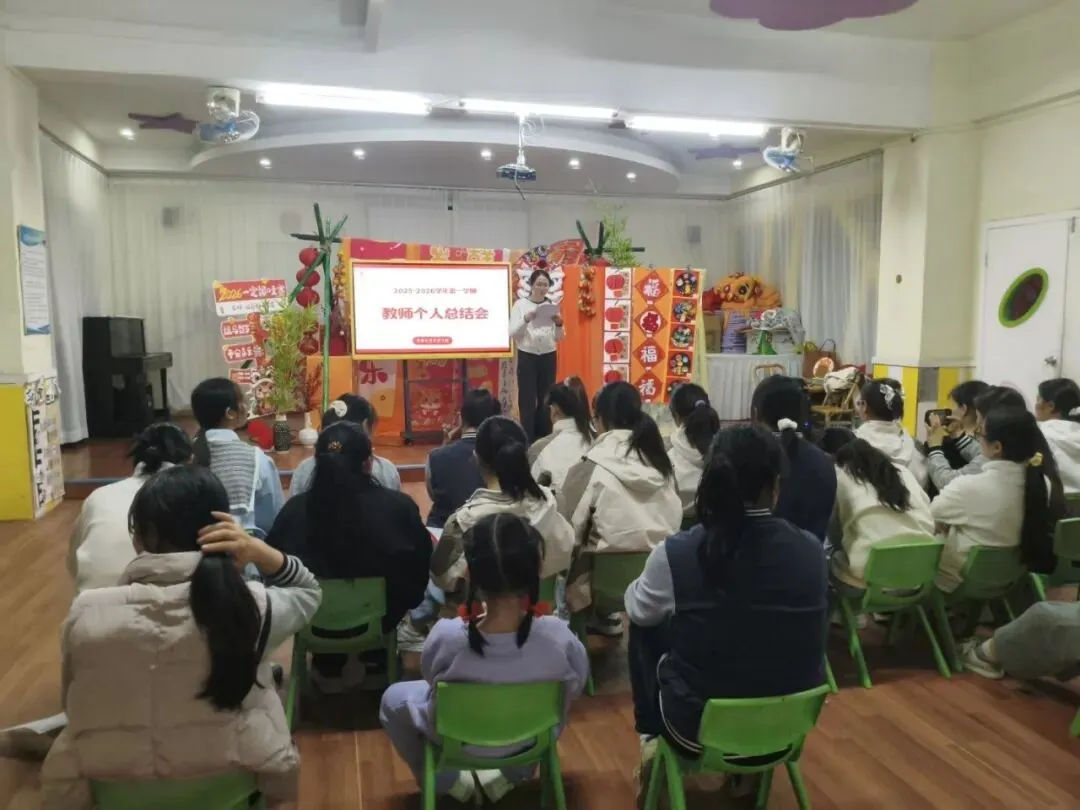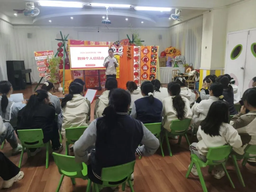 老师们从不同角度复盘了本学期的工作:有的聚焦小班幼儿的入园适应,欣喜于孩子们从哭闹不安到独立穿衣、主动社交的蜕变;有的深耕游戏实践,见证了幼儿在沙水游戏中自主探索、解决问题的能力飞跃。在分享中,老师们也坦诚剖析了工作中的不足:比如对内向幼儿的引导可以更细致,个别幼儿的专注力与规则意识仍需加强。同时,大家纷纷表达了对搭班老师、园所领导的感谢,并展望新学期。