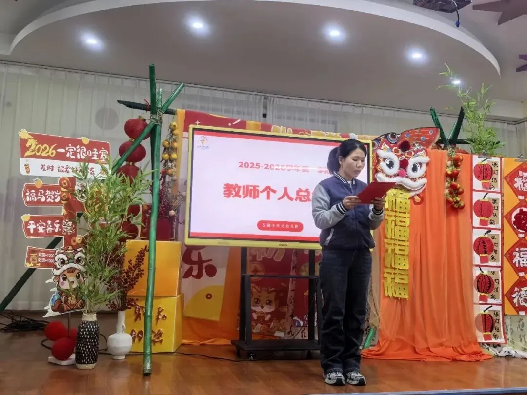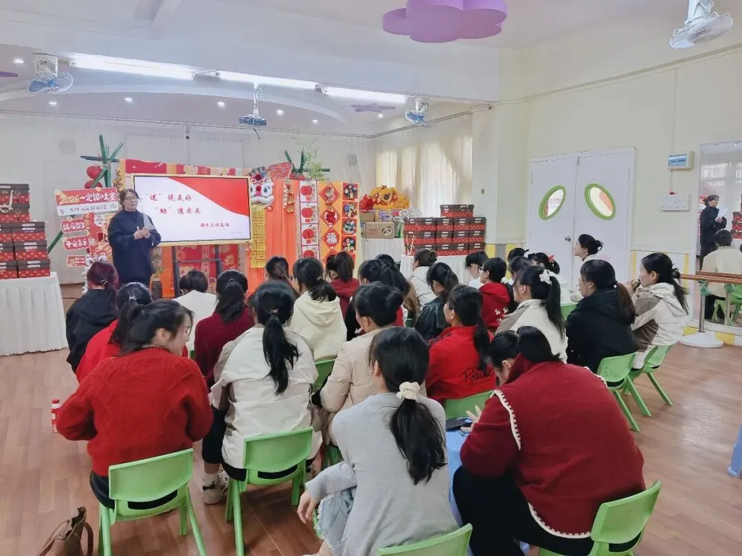黄园长对全园本学期工作进行系统性复盘总结,全面梳理了一学期来在保教质量、幼儿发展、校园安全管理等方面的成果,也反思了工作中存在的不足与改进方向;感恩全体教职工的坚守与付出。同时,园长详细部署了2026年春季学期的工作规划,鼓励大家在假期养精蓄锐,在新的学年继续携手,守护孩子们的成长之路。