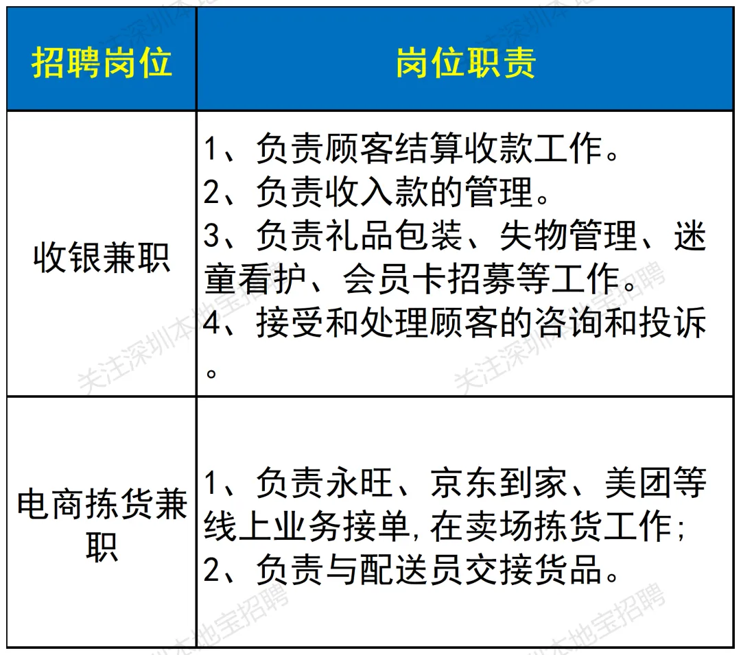 ⭐推荐服务:深圳永旺超市也有全职岗位在招,在我们【本地宝深圳招聘】公众号发送【永旺】即可直达永旺超市兼职、全职最新岗位+报名入口