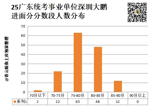 从柱状图我们可以更直观地看到25广东统考大鹏笔试成绩的分布情况: