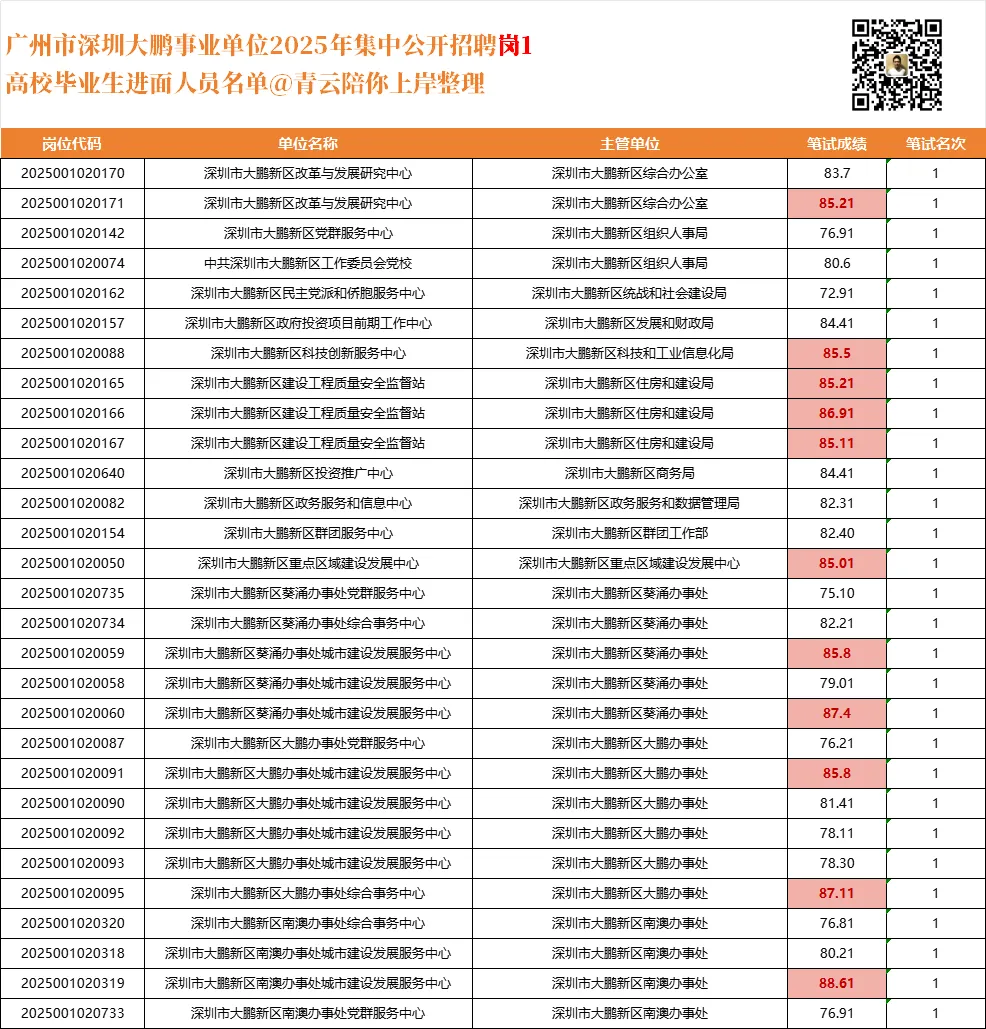 25广东统考大鹏笔试岗1的平均分为82.06,建议大家以此分数为目标去备考吧!