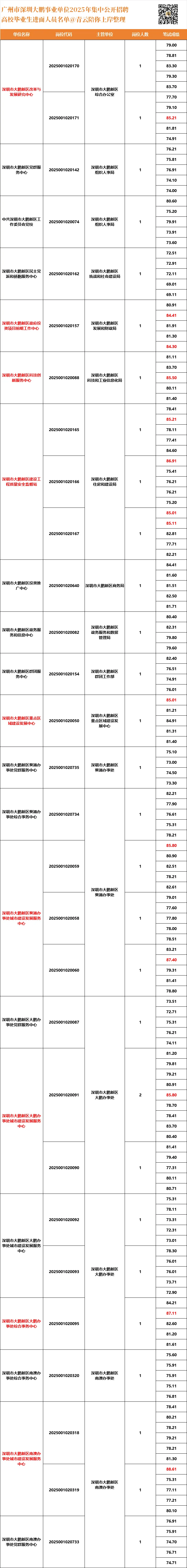 25广东统考事业单位大鹏最高进面分88.61,最低进面分69.01,平均进面分78.92