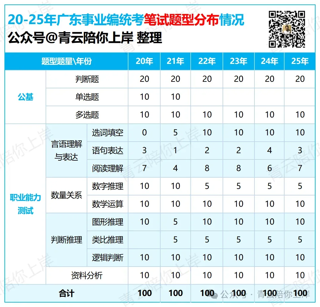 往年广东事业单位统考笔试题型分布情况和备考建议,点击下图跳转查看~