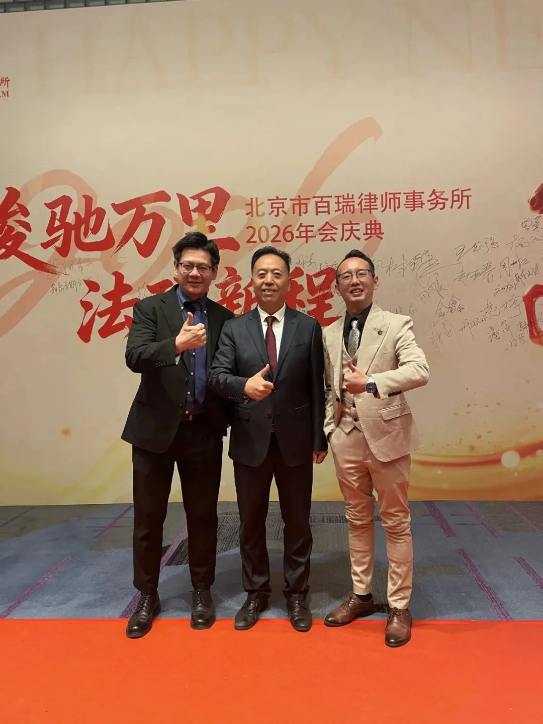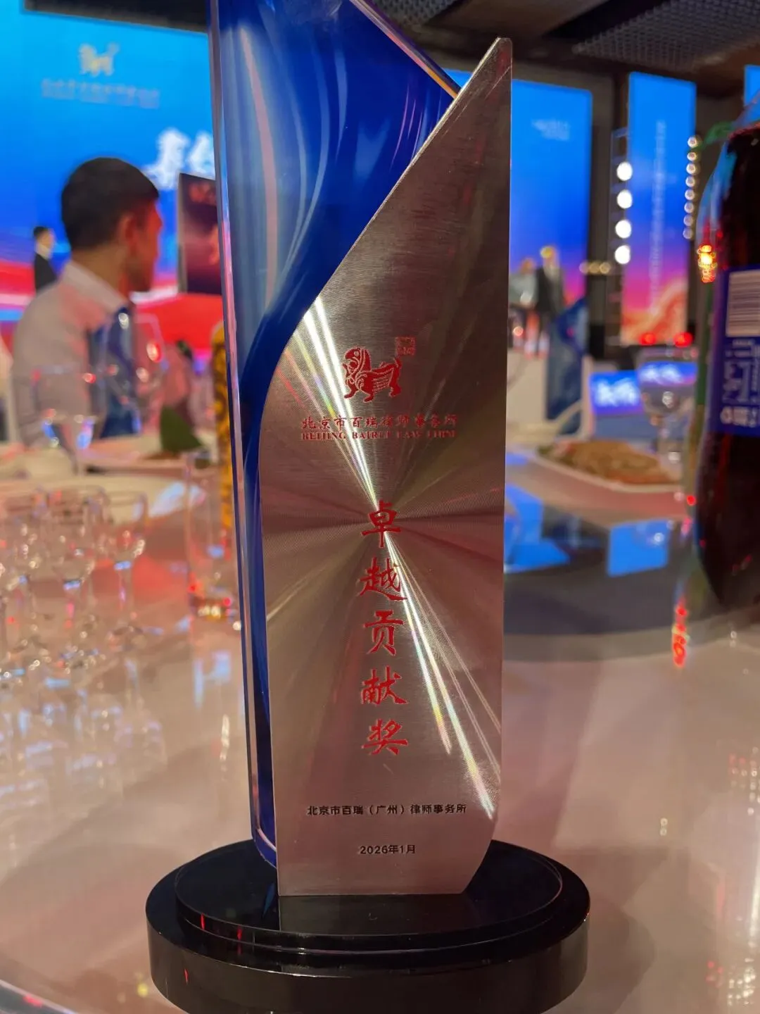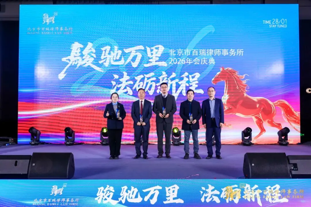 2026年1月28日下午,北京市百瑞律师事务所举办主题为“骏驰万里,法砺新程”2026年会庆典。广州分所发起创始人姚朝武、国际法律事务部主任徐国林、房地产与建筑法律事务部主任王维康应邀出席,广州分所荣获“卓越贡献奖”。