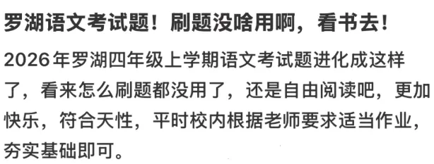 说到底,这几份试卷遭到家长吐槽,根本原因不是“题难”,而是 “习惯的应试路径走不通了”。